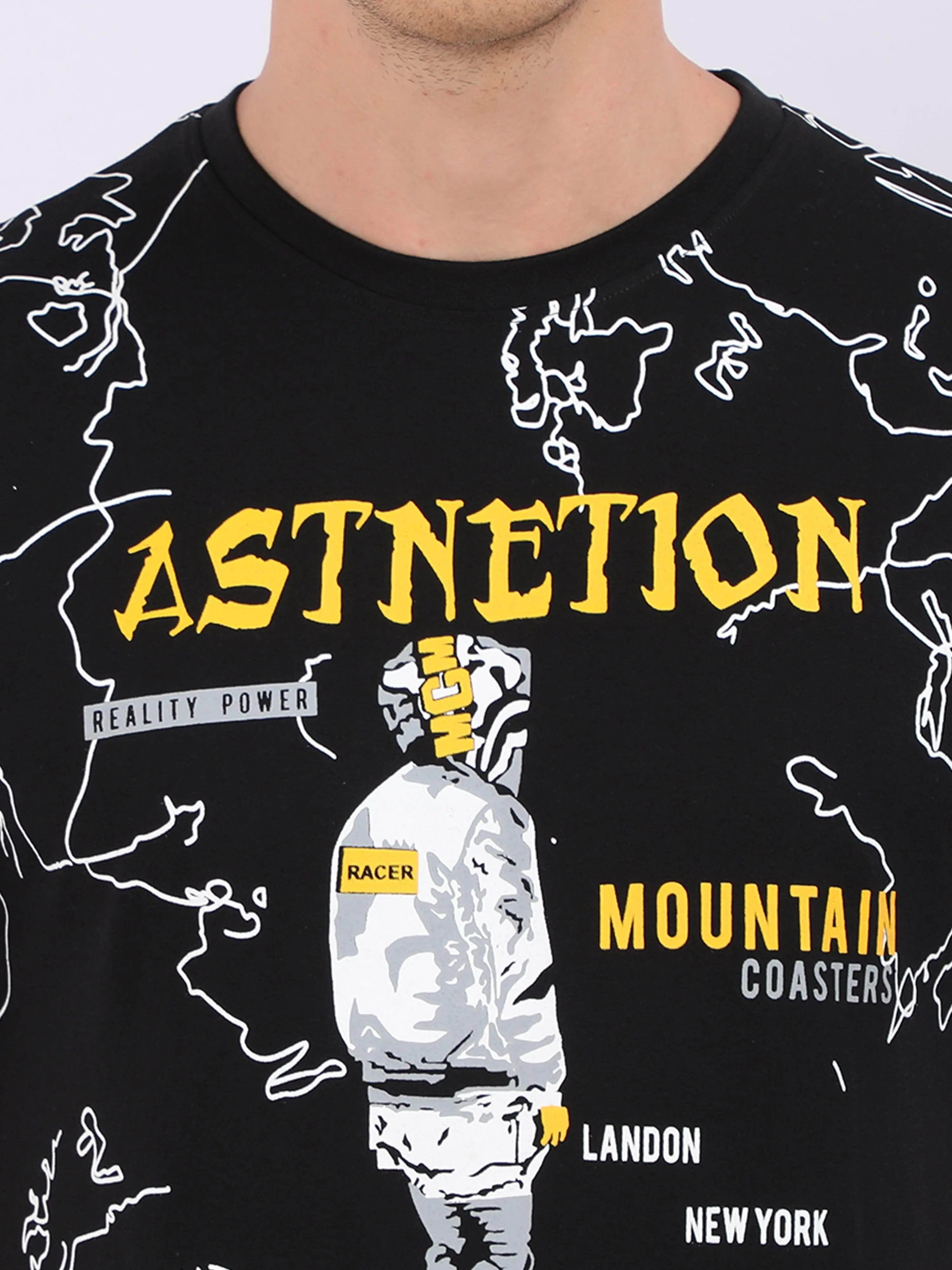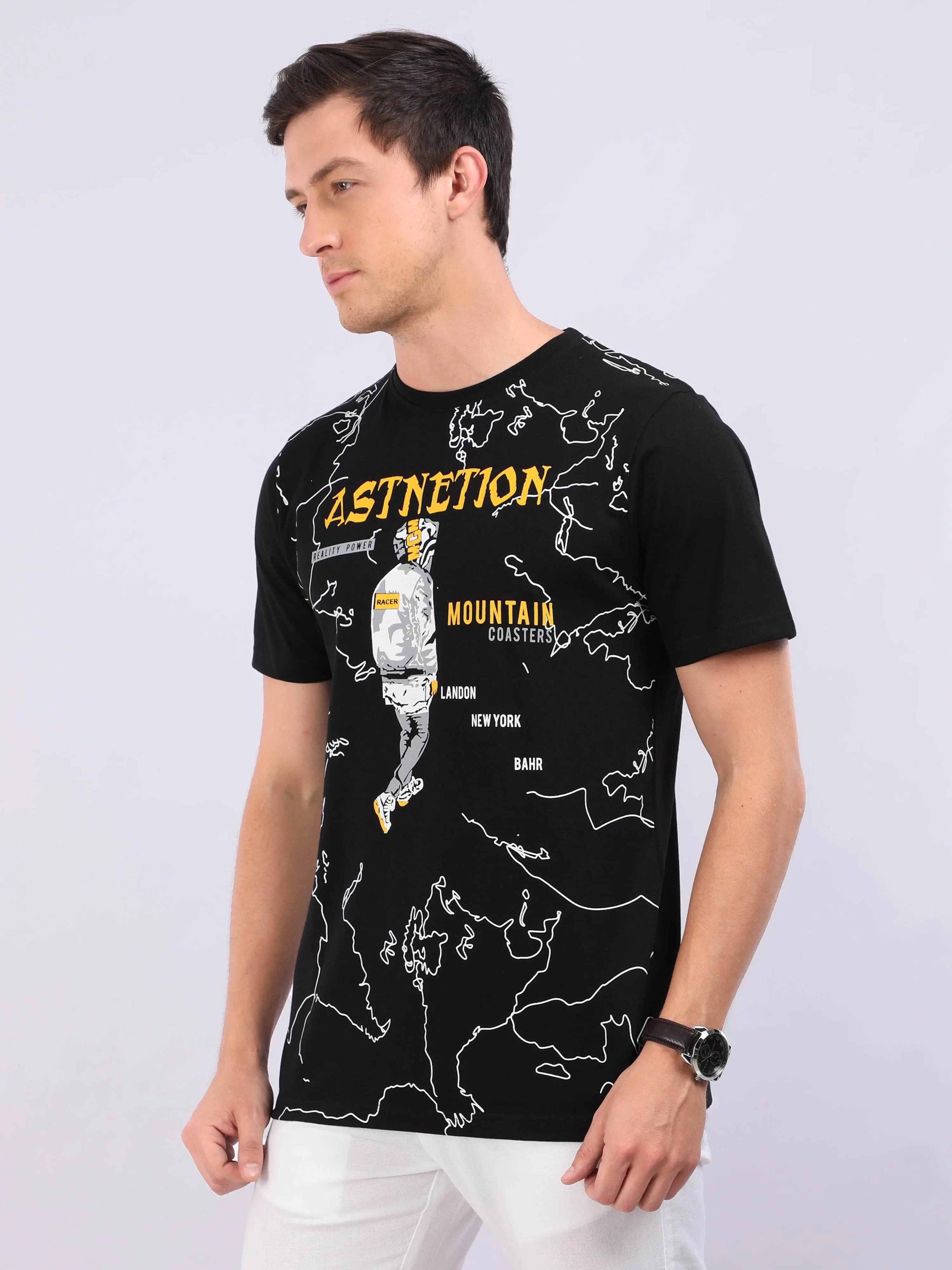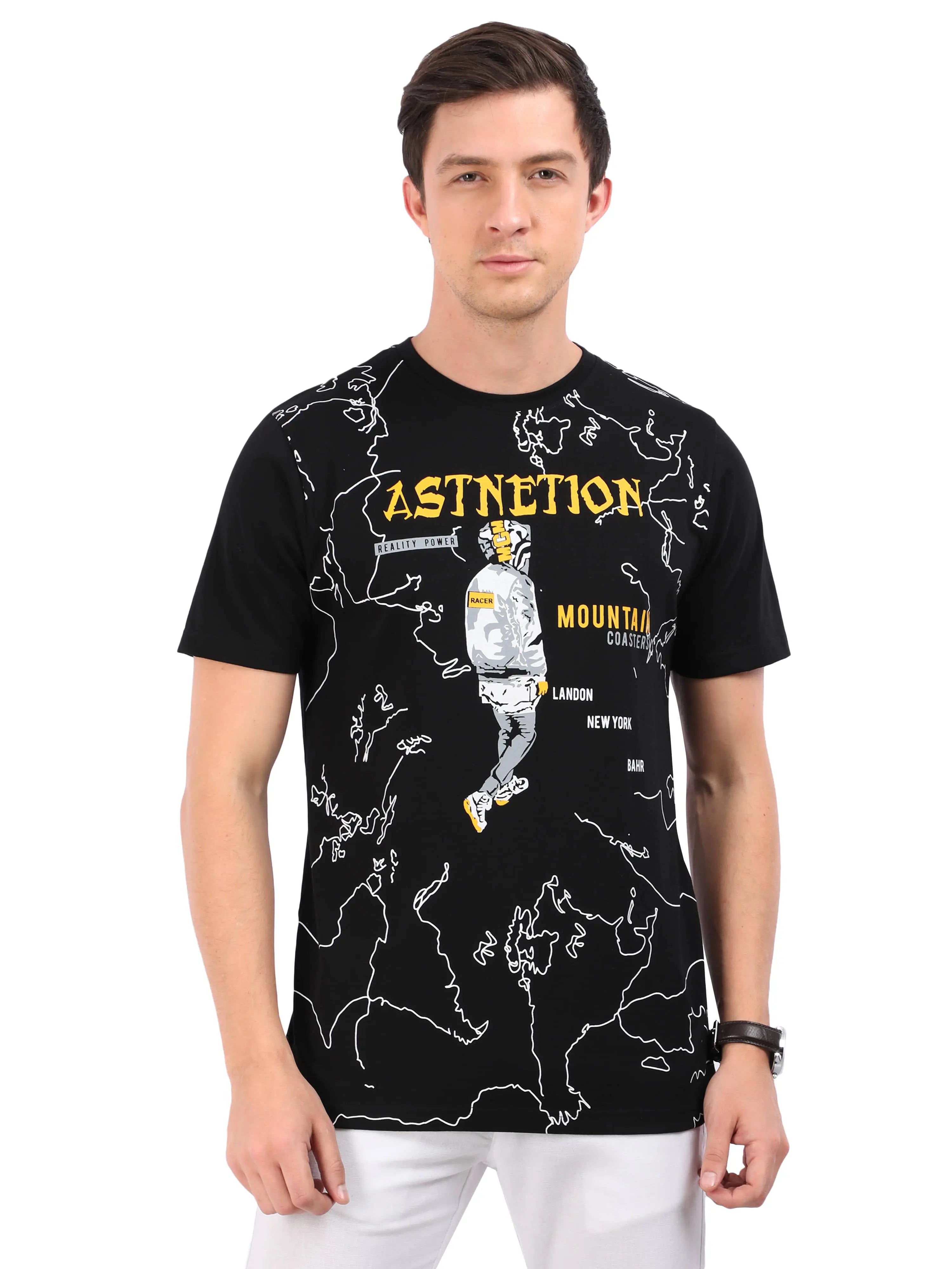 REDpockets Round Neck Black Cotton Graphic Print T-Shirt For Men