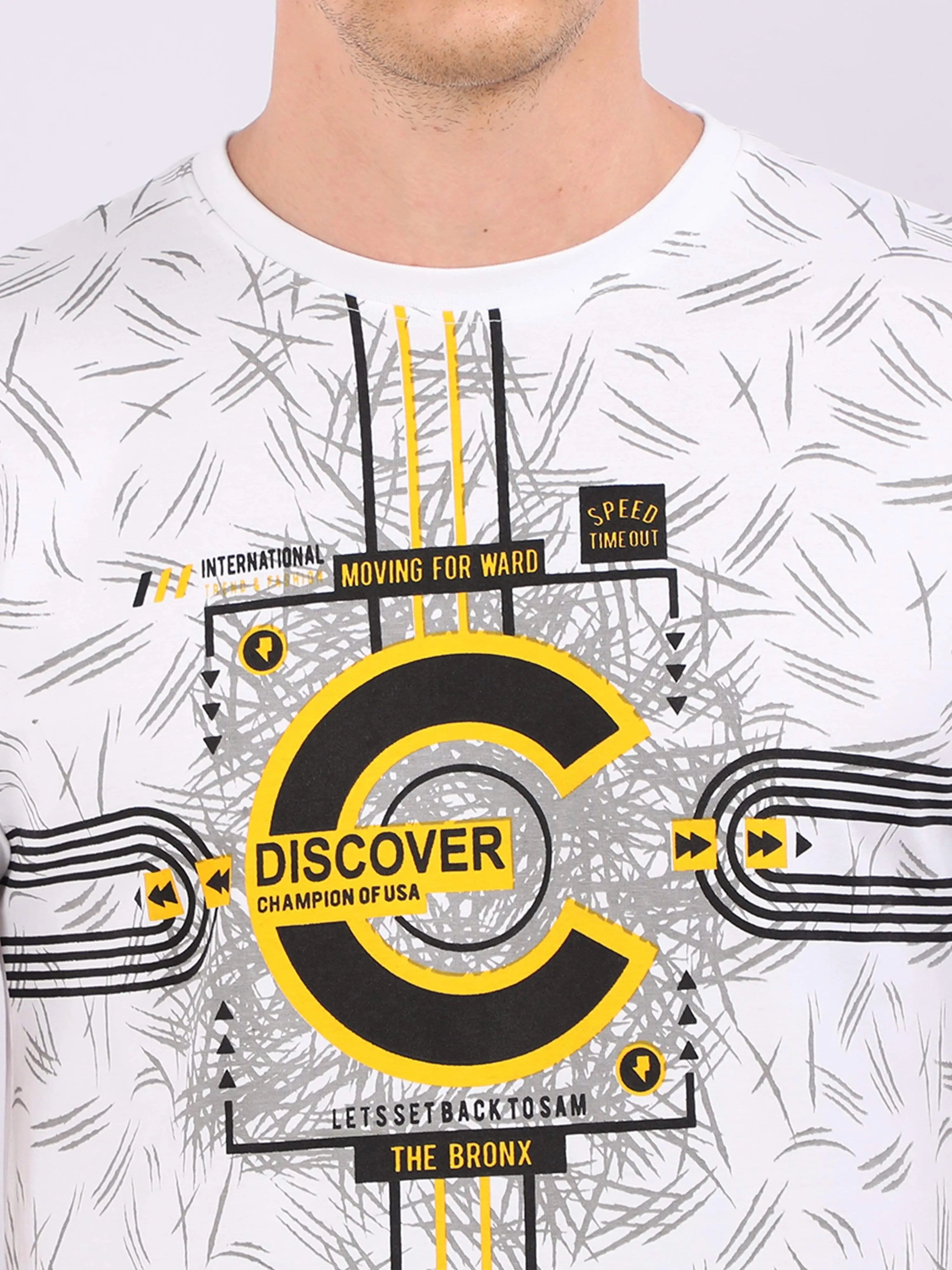 REDpockets Round Neck White Cotton Printed TShirt For Men R006