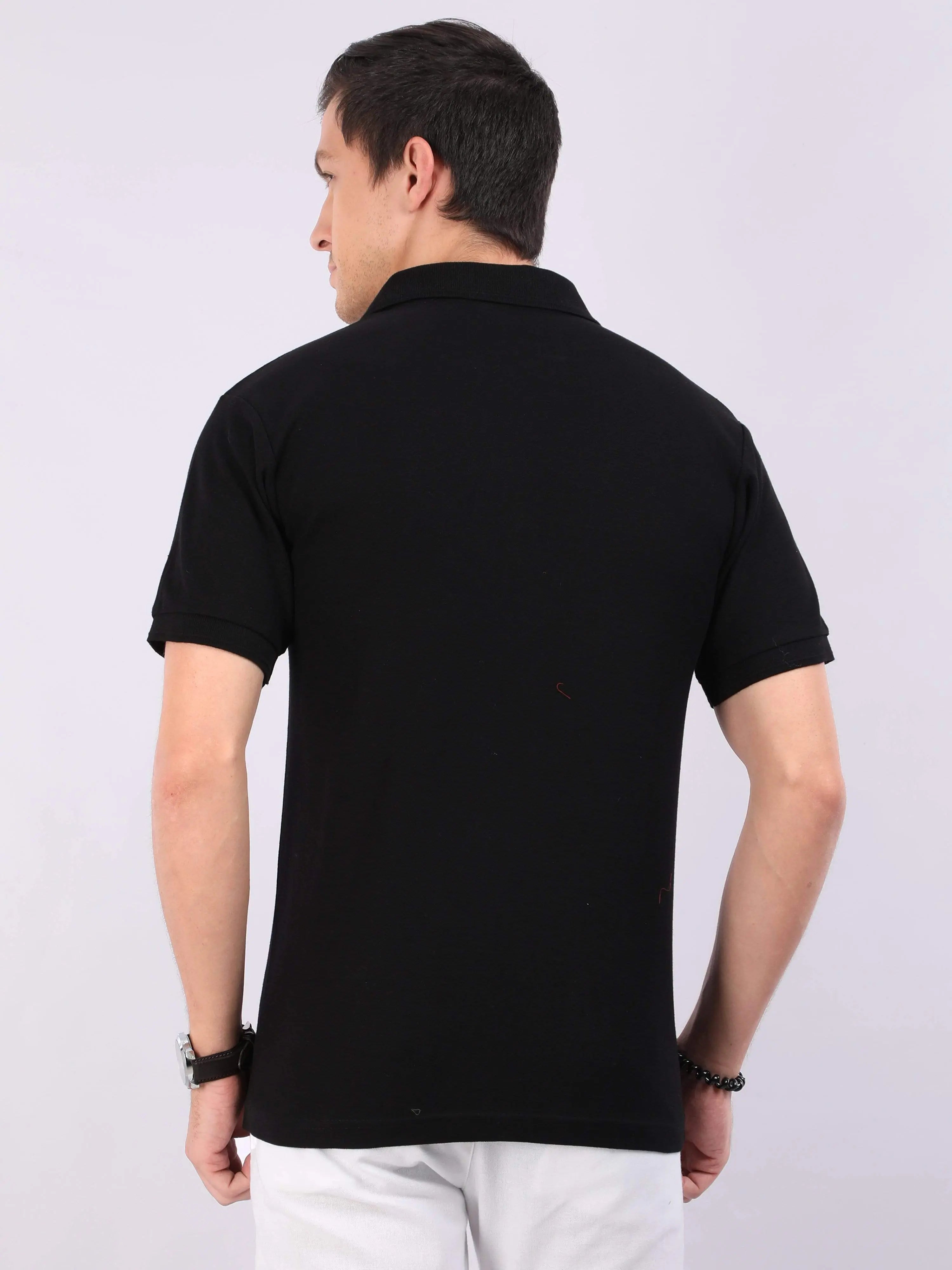 Xura Solid Men Polo Neck Black Regular Fit T-Shirt Plain